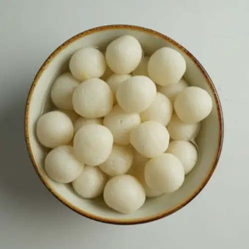 KBM Angoori Rasgulla is a delightful sweet made from soft chenna small balls soaked in light sugar syrup, offering a juicy and refreshing taste.